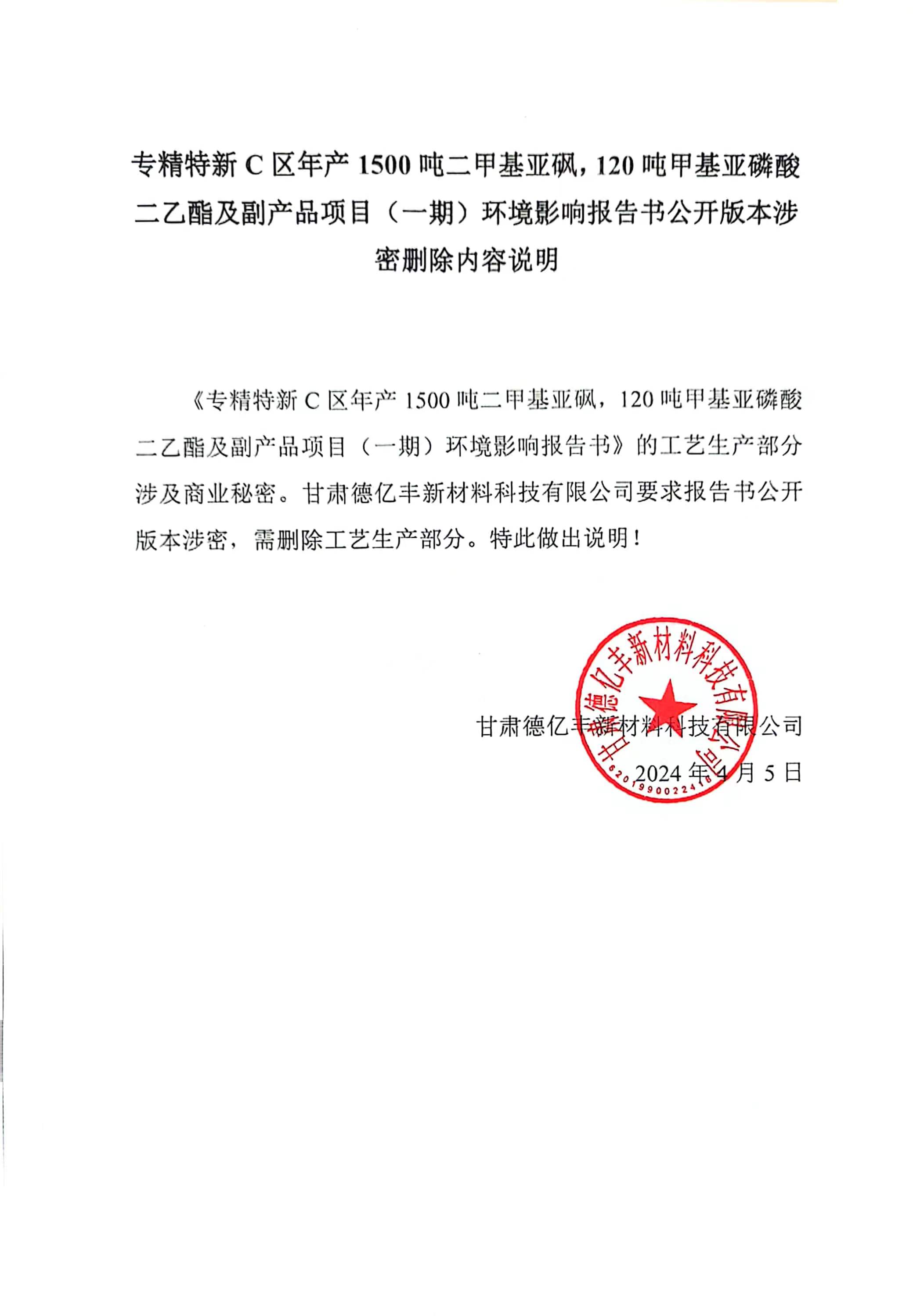 五、單位名稱:甘肅德億豐新材料科技有限公司