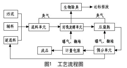 好氧發(fā)酵是實(shí)現(xiàn)污泥資源化利用的一種重要途徑。其優(yōu)點(diǎn)是投資少、工藝簡單、易操作、運(yùn)行成本相對較低,但常規(guī)工藝臭味大、操作環(huán)境差,并且堆肥后農(nóng)用或其他土地利用受污泥中重金屬、有機(jī)物及N、P含量的限制。
